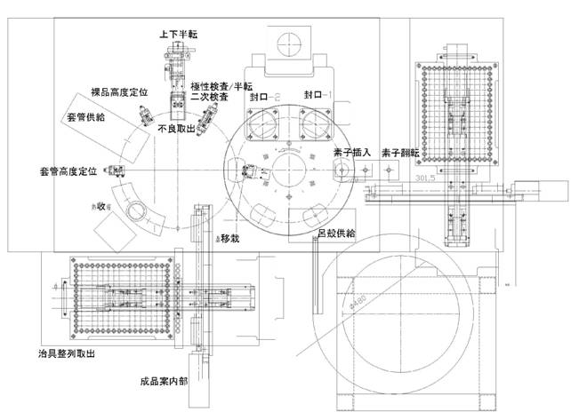 1、 本機(jī)械是專為細(xì)長型(筆形)鋁電解電容器組立而設(shè)計(jì)開發(fā)的自動(dòng)化生產(chǎn)設(shè)備,通過料盤排盤方式進(jìn)行生產(chǎn)。先后經(jīng)過組立、套膠管、加熱收縮而為電容器成品。