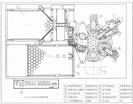 2、本機(jī)采用人機(jī)界面及PLC電路控制,由伺服馬達(dá)帶動筒夾旋轉(zhuǎn),完成產(chǎn)品的束腰、封口。