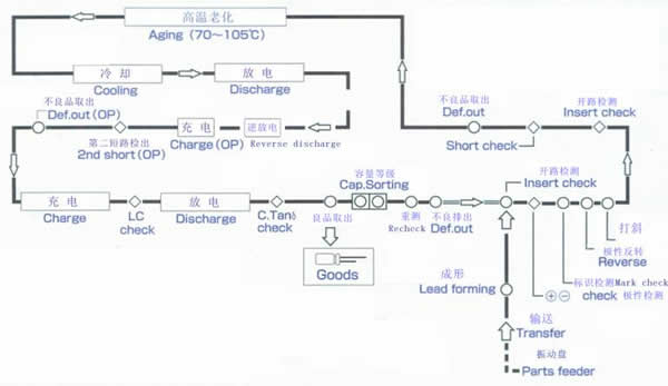 1、本機(jī)械采用自動(dòng)進(jìn)料人機(jī)控制滾筒式老化,適用φ6-φ10長(zhǎng)度最高可達(dá)20mm的產(chǎn)品。在老化前有極性檢測(cè)、打斜、標(biāo)示檢測(cè)、開短路等各項(xiàng)檢測(cè)功能,在老化爐內(nèi)充電時(shí),選用日本電源供應(yīng)器,分別以十二段予以充電,用RS485/232通訊控制,使電源電壓輸出更為精確,做到產(chǎn)品的完全老化但又不損傷產(chǎn)品的特性,爐內(nèi)充電分段進(jìn)行。